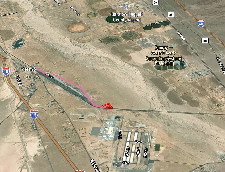 Unlock the potential of 8.5 acres across two parcels in unincorporated San Bernardino County, just south of central Yermo. Strategically positioned near the convergence of major highways, active rail lines, and high-capacity power infrastructure, this site offers outstanding access and visibility for industrial development.