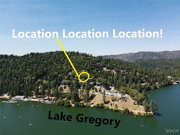 Prime mostly level lakeview lot just one lot back from Lake Gregory and just around the corner from lake access. Million dollar homes spread throughout the neighborhood. Ideal location and view for a profitable AirBnB/short term rental/vacation home. Several short term rentals on the street have had nightly rents of $1000 or more per night and even more on holidays. Lot is approx. 5,942 SQ FT of elevated but mostly level land with approx. 69 FT of street frontage on popular Zurich Drive. All utilities (water,sewer,gas,electric,high speed internet,phone,cable) are conveniently located at or near the street. In real estate they say LOCATION,LOCATION,LOCATION...and this is what they are talking about! Lovely Lake Gregory is just around the corner with miles of hiking trails,boating,fishing,two dog parks,kids play areas,water sports, water slides, entertainment and more. This lot is just a block or so from downtown Crestline Village with Goodwin's Market, dinning, shopping and entertainment all right there. Don't miss this rare opportunity...make your offer today! No address has been assigned to this parcel.