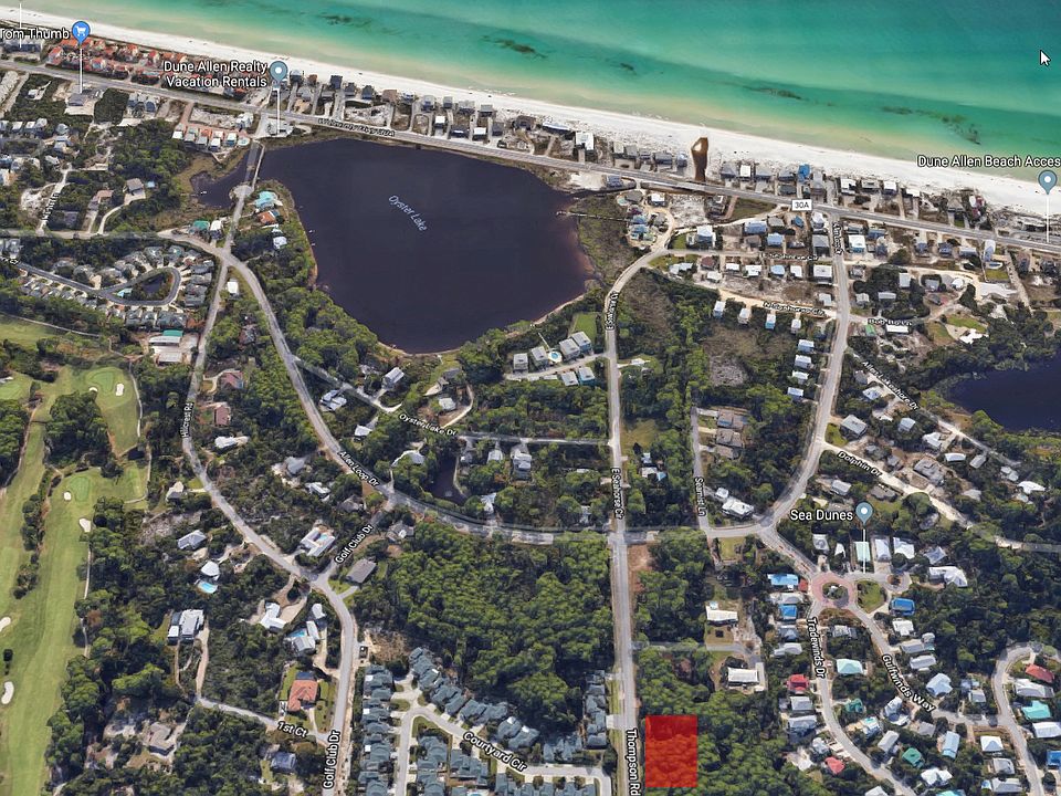 Large beautiful wooded lot within half mile to the beach located in Dune Allen Beach. Lot consist of 13,543 sq ft (125' x 108') with tall Magnolias and Pine trees. Build your dream house with no HOA or build out time. The attached rendering is a concept by a local designer for this lot. The land is dry and has no standing water on it even after the rain. Survey shows just 0.04 acre of wetland on west property line out of 0.31 acre lot!