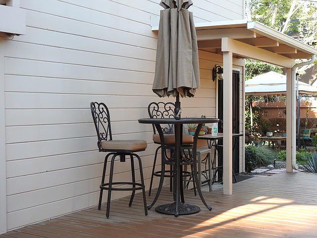 Remodeled freestanding home in private location near Upper State. Please contact 805-969-5222 for info. Open floor plan, vaulted ceilings, Saltillo tile & wood floors, many windows, skylight over the beautifully tiled stairway. Gourmet kitchen boasts new black stainless appliances, RO drinking water, tons of cabinet space, two pantries. Main bedroom is approx 300sf with skylight & French doors to a tiled balcony. Second bedroom has a large bay window, vaulted ceilings and custom closets. Lovely bath includes Jacuzzi tub, skylight, and generous linen closet. Beautifully landscaped & fenced grounds, including a gazebo, decks, outdoor shower and 3 raised veggie gardens ready for harvest. Septic system limits number of occupants to 2 people.