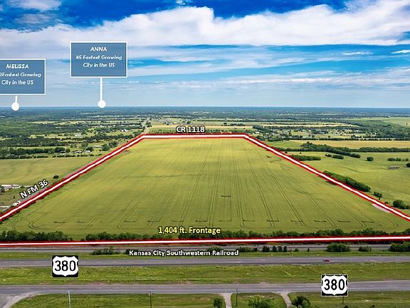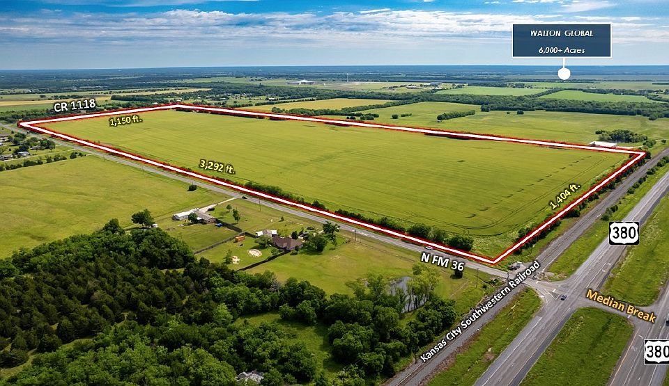 Bryan Haggard Land Group (BHLG) proudly presents 380 CORNERS a ±103.11-acre premier land investment opportunity strategically positioned at the northwest corner of Highway 380 and N FM 36 in Greenville, Texas. This unzoned tract lies outside city limits, offering unparalleled flexibility under Hunt County's less restrictive development standards. With direct frontage on the expanding Highway 380 corridor and a 12i n. water line provided by Caddo SUD, the property is ideally suited for commercial, residential, or mixed-use development. Located just 22 miles east of US 75 and adjacent to the planned Highway 380 bypass, the site offers seamless connectivity to the thriving economic hubs of McKinney, Frisco, Allen, and Sherman. The region boasts a robust employment landscape, featuring major employers such as L3Harris Technologies and Raytheon, and benefits from the explosive growth of neighboring Princeton, the fastest-growing city in the United States as well as Anna (the 5 fastest in the US) and Melissa (the 11 fastest in the US).