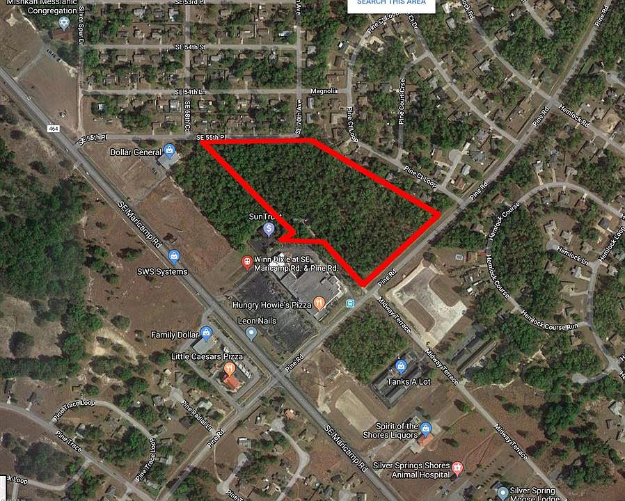Take advantage of this 12.81 commercial site zoned B2 - great for retail or potential re-zone for residential development. Fronts on Pine Rd. Income = $42,038.00. Traffic Volume for SE Maricamp Rd and cross Rd SE Hwy 464 SE = 25,286. *Note in pictures, front 7.4 acres fronting on Maricamp is available Stellar MLS #OM551596. May Divide Further, See attached Plat.