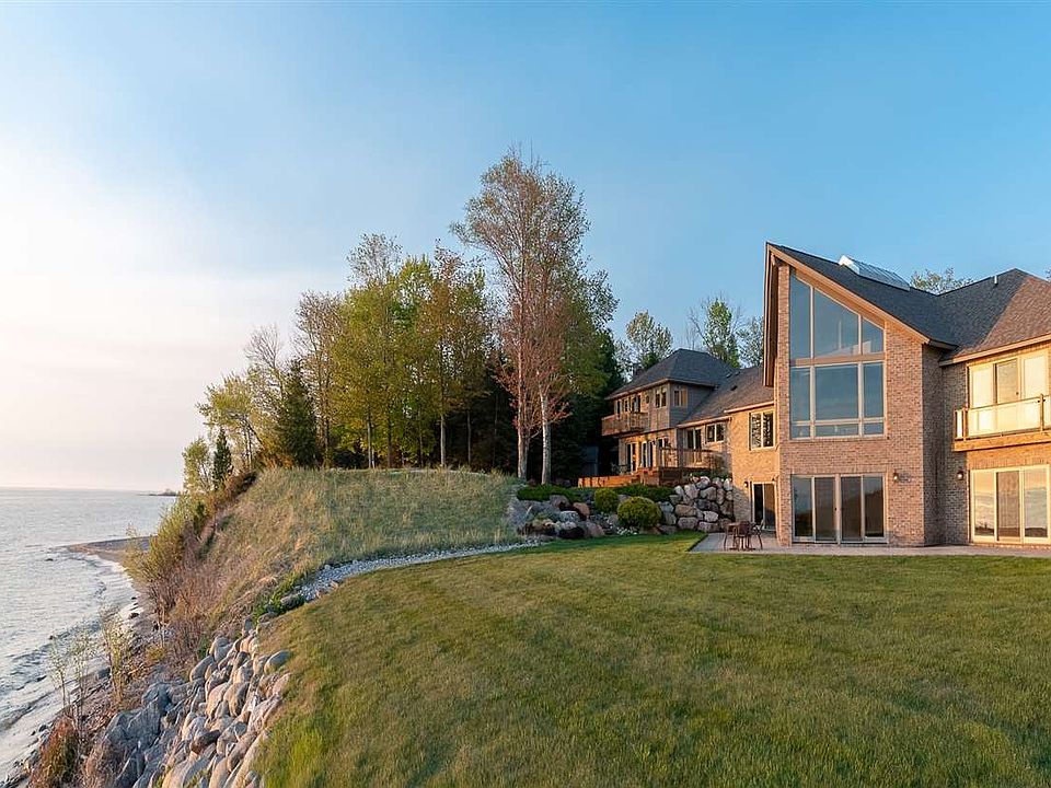Stunning Lake Michigan Home resting on over 300 feet of Frontage with 12 wooded acres across the street. Enjoy the sunsets and beauty of Lake Michigan overlooking Leelanau Peninsula and North and South Fox islands. The home has been meticulously maintained and cared for with attention to detail. Offers 6 bedrooms and 5 full bath and 2 half baths, a gourmet kitchen, a fully functional lower walkout level bar, 2 fireplaces, game room and a guest bedroom. Walking into the front door the panoramic views are breathtaking. With all the amenities and special features this home is an outstanding value...