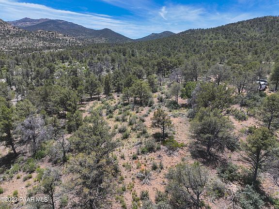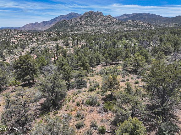 WELL 9 gpm!!!! Welcome to a remarkable parcel nestled high on a picturesque hillside, offering breathtaking panoramic views that stretch as far as the eye can see. Situated near the majestic Granite Mountain and within close proximity to the awe-inspiring Prescott National Forest. Perched atop the hill boasts expansive views, tapestry of natural wonders,rolling hills,distant mountain ranges,scattering of boulders,painting a backdrop against the clear blue sky. Picturesque pine trees grace the land,offering a serene ambiance with the scent of pines needles fills the air, inviting you to take leisurely strolls and relax in tranquility of natures embrace.This land presents a rare opportunity to create your own private retreat or dream home amidst natures grandeur. NEW WELL DRILLED 9 GPM!!!