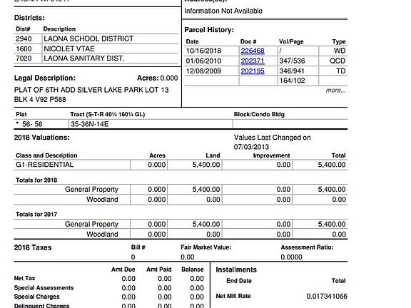NICELY WOODED LOT LOT #2 BUILD A HOME OR STORAGE SHED 180' DEEP X 60' WIDE ONE BLOCK FROM SILVER LAKE BOAT LANDING BUY ONE OR ALL THREE CALL FOR A BETTER PRICE ON ALL THREE LOT # 018007180000