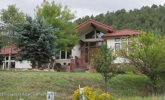 BEAUTIFUL HOME OVERLOOKING THE ROARING FORK VALLEY! 20FT ceiling in great room, beautiful open entryway, gas FP in great room, large (low E) windows, wood beams, oak, tile and granite floorings & oak cabinets. Large master suite w/ large master bath . Basement area includes large laundry room, family room, bath and office area. Stucco and brick exterior with brick paver driveway, patio & walkways, wrought iron gates & railings,50 year Spanish clay tile roof. Low maint. aluminum soffit/fascia. New sprinkler system, fruit trees, flower beds, private patio area w/hot tub enclosure. Great views and sunshine from large windows in every room. Extremely well built home just minutes south of Glenwood and 35 minutes from Aspen & Snowmass. Radon mitigation system installed in 2014.
