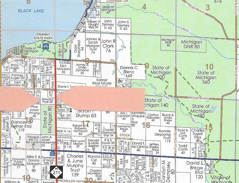Secluded 9.47 acre parcel roughly 90% wooded located off of a paved road, with a 50 foot wide easement access off of M-211. It is located about a half mile from the Onaway State Park, and beautiful Black Lake, which is over 10,000 acres in size. There is abundant State Land, the Black Mountain Recreation Area, and trails nearby for all of your four seasons recreational needs. Power-Natural Gas-Fiber Internet at the road. Sale Contingent on Township Split Approval.