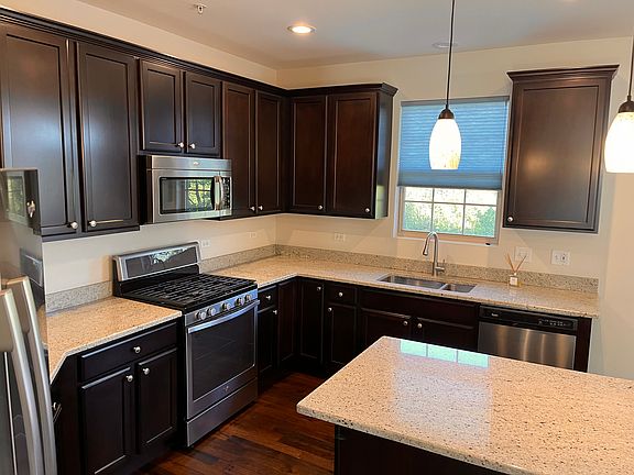 Premium location and the coveted Clark model in Shelburne Crossings. 2 bed and a loft|2.5 bath|3-story home with attached 2 car garage. Eat-in gourmet kitchen, 42" cappuccino stained cabinets to match the hardwood floors to unobstructed balcony views of forest preserve and pond. Loft can be used as home office. LR w/ washer/dryer. Main BR w/ vaulted ceiling and bay window, large walk-in closet and double vanity. Second BR has attached full bath and double door closet. Lower level family room with English lookout windows and extra storage. Easy walk to Metra and downtown Winfield shops/restaurants. Lawn & snow removal included. Renter responsible for all utilities (water, gas, electric, trash). Landlord is responsible for HOA fees.