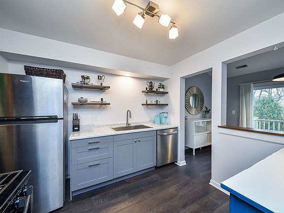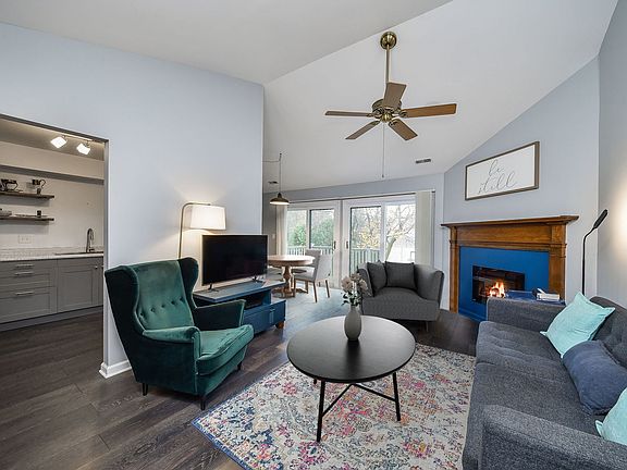 Beautifully improved and lovingly maintained second-story condo offers a newer kitchen with newer cabinets, countertops, stainless appliances and walk-in pantry, newer bath with newer countertop, newer tile shower surround, newer floors, newer lighting, newer sliding doors to the large balcony, and newer contemporary interior paint. Warm and cozy, the inviting living room offers a vaulted ceiling and fireplace. The separate dining room is large enough to host a crowd, perfect for the holidays. Two nice-size bedrooms boast great closet space. A laundry room and single garage complete everything you need. Newer HVAC and hot water heater too! Highlake owns a private lake (swim, fish, canoe) with a private beach and a walking path. Located near the Metra Train and Central DuPage Hospital and not far from the DuPage County Government plaza.