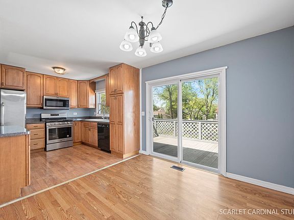 Welcome to this charming 3 bed, 2 bath home nestled in a desirable location close to downtown Wheaton and Winfield, and within Wheaton D200 school boundaries. It features an updated kitchen boasting 42" maple cabinetry and newer stainless steel appliances. The wood laminate flooring throughout the home adds a seamless flow from room to room. Natural light fills the living spaces, and the sliding glass door leads out to a large deck, perfect for entertaining. From the deck, you can overlook the fully fenced yard, providing privacy and a safe space for children and pets. Don't miss out on this opportunity to find value at this price!
