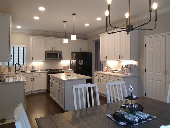 Stylish Mill Creek Village home. Walk to Mill Creek Market, shoppes, and golf course. Refinished hardwood flooring through out 1st floor. 2 story entry with impressive chandelier and staircase. 1st floor bedroom/office. French doors. Modern black and glass barn door. Beautiful slabs of white Carrarra quartz on counters and walls of kitchen. 6/2023 dishwasher, '21 microwave, stove, washer, dryer. Quartz counter tops in bathrooms. Gas fireplace. Trendy tile. Paint, carpet, tile, loft/laminate, door hardware, light fixtures, window treatments also '21. $110 monthly HOA covers yard work, snow removal, window washing and black top/driveway refreshing.