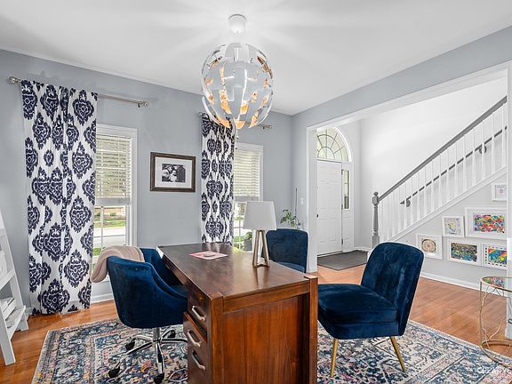 Enjoy Maintenance Free living! Wonderful open floor plan! This beautifully appointed home features hardwood floors on the first level, and carpeting on the second level & staircase. Custom window blinds, and newer upgraded light fixtures! Your gourmet kitchen with large eating area opens to family room and has upgraded stainless steel appliances, island, and 42" cabinets. The eating area also features sliding glass doors that lead to your deck, great for those summer days! Entertain guests in your spacious formal dining room that is open to the formal living room. The large master suite features a recently remodeled private master bath. There is a 4th bedroom in the finished basement! The deep pour basement is carpeted and has a large recreation room, a play area under the staircase, office space, and an abundance of storage. Newer roof and siding (2023). New basement bathroom (2020). Remodeled master bath (2022). Mill Creek offers 72 acres of parks, 15 miles of walking/bike paths, tennis and more!!!!