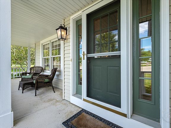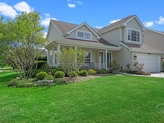 Welcome to a perfect blend of comfort and style in the highly desirable Mill Creek neighborhood. This stunning home sits on a professionally landscaped corner lot, inviting you in with its charming wraparound front porch. The kitchen, remodeled in 2014, boasts elegant white cabinetry, soft-close drawers, marble countertops, pewter hardware, KitchenAid appliances, recessed lighting, a subway tile backsplash, and a cozy dinette area. The adjoining family room is perfect for relaxation, featuring recessed lighting, a fireplace, and gleaming hardwood floors. The luxurious primary suite is a true retreat with its high ceilings, neutral carpeting, and an en-suite bath remodeled in 2010. The bathroom includes tile flooring, a glass-enclosed shower, a separate tub, a vanity with a quartz top, and two skylights that bathe the space in natural light. The second-floor bath, updated in 2018, offers modern conveniences. A professionally finished basement adds versatile living space, including a recreation room, bonus room, play nook, and bathroom. Recent updates include new carpet and interior paint in 2023, a new furnace in 2021, and a new water heater in 2024. Don't miss the opportunity to own this hidden gem in Mill Creek!
