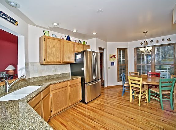 Wow, what a picture perfect sparkling townhome. Gorgeous hardwood floors on 1st level. Lovely frieze neutral carpet upstairs. Nice size kitchen w/granite counter-tops, Stainless Steel appliances and pantry. Convenient large 1st floor laundry room. Cozy den off entry. DR RM open to Two story LR w/gorgeous FP. Large basement w/carpeted good size rec room, large unfinished portion for storage & a bathroom. A 10+