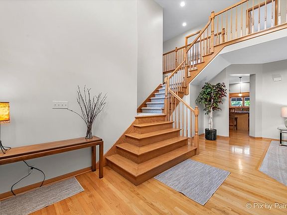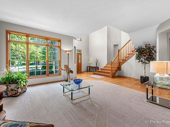 Welcome to 0N776 Curtis Square, an exquisite 4-bedroom, 4.5-bathroom home perfectly situated on a premium lot overlooking the 16th hole of the Mill Creek Golf Course. Designed with timeless craftsmanship and modern upgrades, this residence seamlessly blends comfort, sophistication, and functionality. A grand oak double staircase, six-panel oak doors, and gleaming oak flooring set the stage for the home's refined character. The gourmet kitchen features granite countertops, matching backsplash, and ample cabinetry, while the 2 story family room is anchored by a brick-surround gas fireplace. An enclosed three-season heated porch provides year-round enjoyment of the serene backyard, complete with a koi pond, TimberTech deck with LED lighting (2025), and lush professional landscaping. The vaulted primary suite offers a peaceful retreat, while every bedroom enjoys the privacy of its own en-suite bathroom. Thoughtful details such as a laundry chute and freshly painted interiors (2025) enhance everyday living. The finished basement is an entertainer's dream, offering 10-foot ceilings, a versatile flex room, workshop with shelving, a spa-inspired bathroom with shower and sauna, and a soundproofed media area complete with bar, projector, and screen. Significant updates ensure lasting value and peace of mind, including: High-efficiency furnace with humidifier & AC (2025) Pella windows & sliding door (2025) New carpet with upgraded padding (2025) Roof & gutters (2018) and siding (2015) Full concrete driveway and 3-car garage. Located within walking distance to Mill Creek Elementary, with a park and playground just around the corner, this home offers both convenience and community. With its premium golf course views, exceptional amenities, and timeless design, 0N776 Curtis Square is more than a home-it's a lifestyle.
