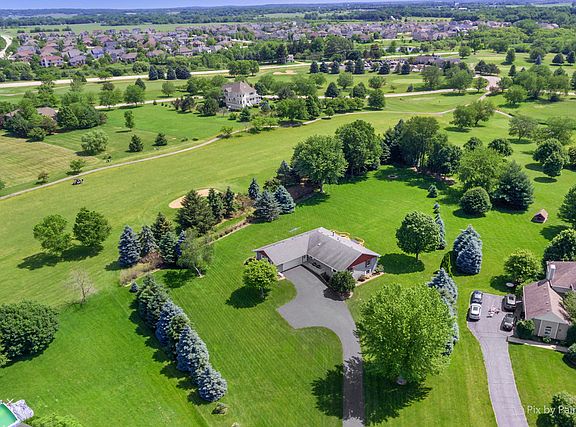 You will love this quality built ranch that sits on a high cul-de-sac lot overlooking the 10th and 15th fairways of the Hughes Creek Golf Course -- enjoy amazing year-round scenic views from almost every window!! This special home has spacious rooms throughout and an open flowing floor plan that will accommodate any lifestyle! The eat-in kitchen has white cabinetry, Corian counters, and skylight... Living room with fireplace and built-ins... Bedrooms 2 and 3 have computer nooks... The master bedroom and hall baths are totally renovated with custom tile work, quartz counters with integrated sinks and porcelain tile flooring! There is a finished look-out basement with rec areas, full bath and abundant storage space!! Other features include newer: furnace, a/c, Andersen windows, paint, flooring - shows like new!! 2x6 insulated construction for low utility costs... 2 plus car garage (26x22!)... Expansive deck... Oversized mill work... Quick access to Metra Train, I-88, and downtown Elburn... All and more on this stunning private lot surrounded by mature trees!!