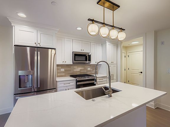 Large 1 Bedroom in Boutique new building walking distance to the Metra and Northwestern-Central Dupage Hospital. Premier Residences with occupancy availabe for September 1st. Open concept floor plan on the first floor, with 1 full bathroom, large windows, private balcony, large gourmet kitchen with designer features including, quartz countertops, sleek GE stainless steel appliances, gas range, and expansive island offering additional counter space and seating. In-unit full size washer/dryer, high speed Fiber Internet to building, large custom closets, heated indoor garage parking available. Building features keyless access/intercom. Enjoy these custom residences built by local luxury custom home builder. Professionally managed with attention to detail.