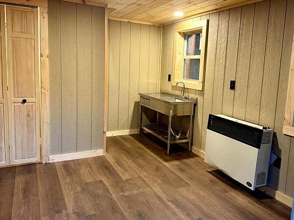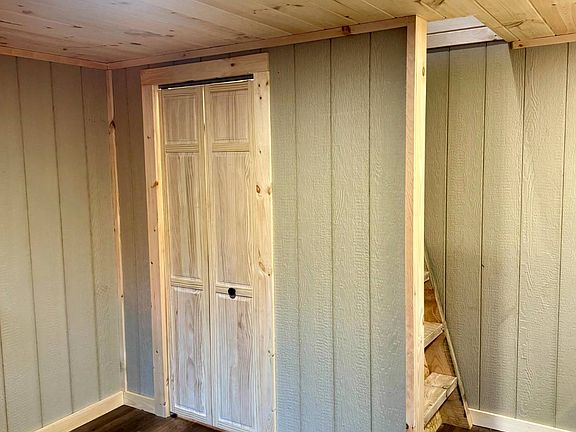 Storage loft upstairsTongue-and-groove pine ceilingsTwo-story retreatPine trim
