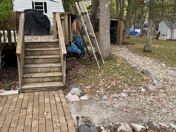 Located in a cul-da-sac, this spacious pie-shaped lot offers a 2006 Gulfstream travel trailer, wooden deck with privacy greens, two sheds, picnic table, a fire pit surrounded by pavers. And that's just the front part of the lot. Behind the travel trailer is even more space for enjoyment. The trailer comes with a main bedroom and bunk room. Woodhaven Lakes offers access to the 7 lakes, fishing ponds, two pools, beach, recreational complex, playground, general store, trails for hiking, cross country skiing, and snowmobiling. Please note that Woodhaven Lakes is a gated recreational community and cannot be used as a primary residence or homestead. You must be accompanied by a broker to view any properties. Property owner pays the association fees.