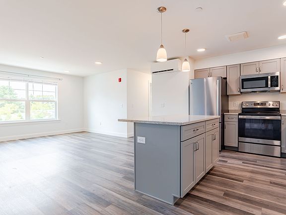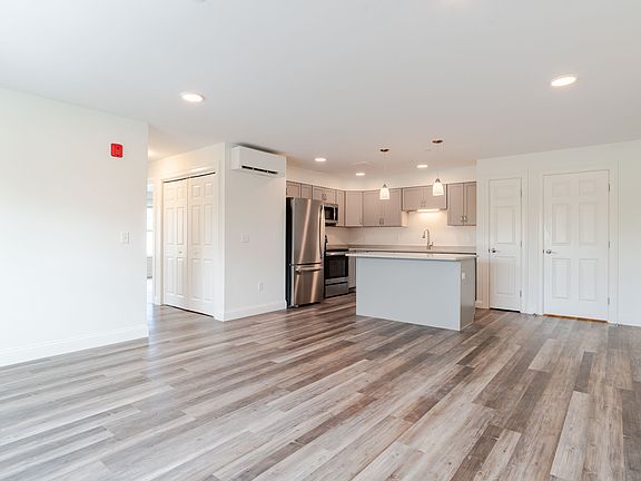 Brand new spacious 2 bedroom 1 bathroom units located in downtown Sanford. 12 units, 3 floors, elevator access. Assigned off street parking, secure building, 24/7 surveillance. Window blinds, curtain rods provided. Stainless steel appliances: electric range, refrigerator with bottom drawer freezer, over the range microwave, and dishwasher. W/D hookup. Tile in bathroom, and laminate hardwood throughout. LED dimmable lighting. 3 zone wall heat pumps for energy efficient heating and cooling. (8) 900 SF units available @ $1900/month. (4) 950 SF units available @ $1950/month. 933 Main Street Sanford, ME 04073 Units 1-12