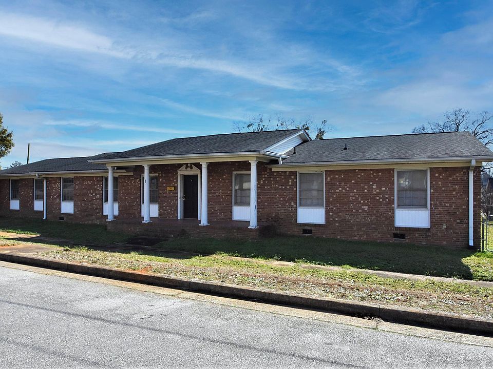 ALL BRICK RANCH in the heart of Greer with classic front porch pillars. There is plenty of room to spread out here. This home needs some TLC and updating but is extra SPACIOUS and has a great floor plan. Large formal living room and dining room, plus a roomy kitchen and breakfast area. The central DEN offers built-ins and a GAS LOGS fireplace, plus opens to a COVERED PORCH that would be a cinch to screen in. Tons of STORAGE here 2 bifolds and 2 closets in the hallway! A large 2-car garage features a STORAGE / WORKSHOP area and a yard door to the back. The 11 x 16 SHED has POWER and window A/C unit - great for additional storage or workshop space. Fully FENCED yard has two 4 gates as well as an 8 gate. A nice wide driveway offers options in parking. LOCATION - Victor Park is across the street; downtown Greer and City Park are in easy walking distance you will love being so close to the downtown scene. Check this home out this area is exploding in growth.