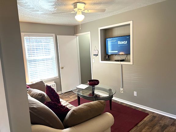 This apartment was just remodeled with brand new paint throughout, a new central heating and air HVAC unit, new bedding, new flooring, and leather dual-reclining sofa in the living room. This rental includes a complete kitchen with all of the necessities, from pots and pans down to silverware, and a full-size stove & refrigerator, and charcoal grill for your use on your private, covered, back patio! We have supplied everything down to the hangers to hang your clothes on inside of full-sized closets with dressers in both bedrooms. There is a smart TV in the living room and both of the bedrooms, with a DVD player at all 3 TV