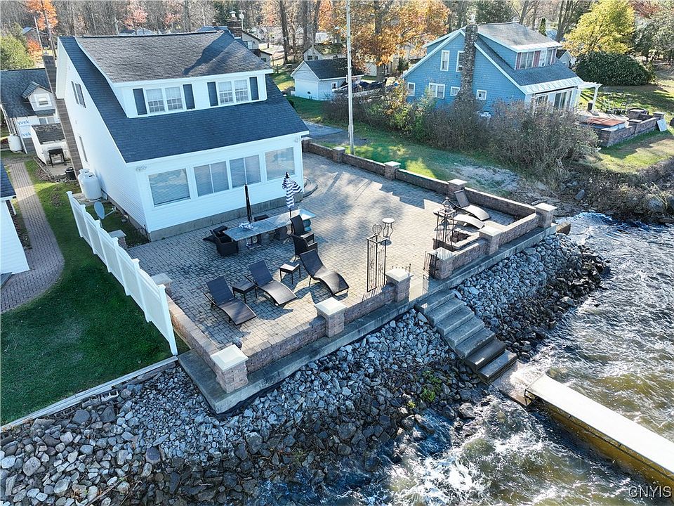 Stunning lakefront home on beautiful Oneida Lake, perfectly situated in the resort area of Sylvan Beach on the east shore. Enjoy breathtaking sunsets over the water, a sandy lake bottom ideal for swimming, and sidewalks leading right to the village’s entertainment, shops, and restaurants. Inside, you’ll find 4 bedrooms, 1.5 baths, hardwood floors, a cozy stone fireplace, and sweeping lake views from every angle. Outside, relax or entertain on the massive patio of your dreams, the ultimate spot for lakeside gatherings. Whether you love boating, snowmobiling, or ice fishing, this home offers year-round fun and resort-style living at its best.