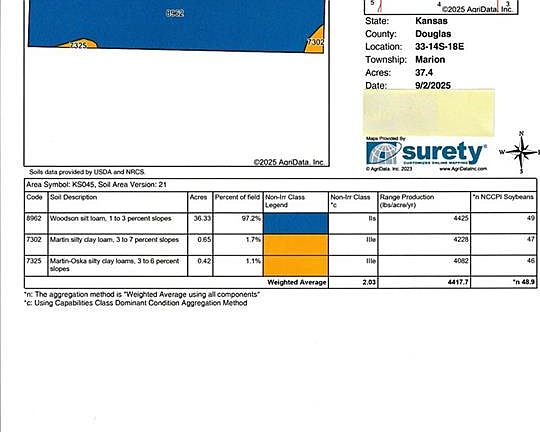 Perfect building site or purchase with additional 20.25 AC MLS 2572342 Taxes TBD Aerial map, created with Surety Pro paid subscription & used with permission from AgriData, Inc.