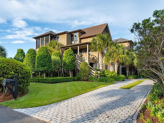 Experience an extraordinary oceanfront lifestyle at 1 44th Avenue, one of Isle of Palms' most thoughtfully designed and meticulously crafted residences. Situated on a quiet street, this private estate features lush, manicured gardens designed by Wertimer and Cline, a full driveway, and a three-car climate-controlled garage. Built in 2017 by Sheppard Construction in collaboration with architect Beau Clowney and acclaimed Charleston designer Cortney Bishop, every element of the home has been carefully curated to create a refined coastalretreat.This reverse floor plan was intentionally designed to maximize the sweeping ocean views from the main living areas, where you'll spend most of your time. Walnut floors run throughout the home, while cypress doors add warmth and character to every room On the entry level, guests are welcomed into a private wing featuring multiple en suite bedrooms, a spacious secondary living room, an office, a full laundry room, and private guest porch access. Thoughtful details include hidden wall-integrated closets for a clean aesthetic, zero-entry tile showers, custom J. Geiger shades, and MQ windows. Unique touches like a nautical porthole window in one bath off the guest suite, a bunk room, and an additional spacious guest suite with two queen beds provide both charm and comfort. A centrally located screened-in veranda offers a peaceful sanctuary or an exceptional entertaining space. Anchored by a fireplace adorned with hand-placed full oyster shells and adjacent to a full bar with refrigerated drawers, this area becomes a cozy and functional space year-round. Ascending to the upper level, you'll find the heart of the home, an expansive open-concept living room, dining area, and chef's kitchen with a separate butler's pantry. A pass-through window connects the kitchen to a screened dining porch, perfect for al fresco meals, while a large oceanfront porch provides panoramic views that extend all the way to the Sullivan's Island Lighthouse and Morris Island. The kitchen is a chef's dream, equipped with Miele appliances, a full Sub-Zero freezer and refrigerator, steam oven, warming drawer, and a spacious conversational island. The living room centers around a beautiful fireplace with a hidden television that rises from the cabinet, allowing the fireplace to remain the focal point. The walnut floors continue through this level, complemented by a stunning sunken cypress ceiling. The primary suite is a private sanctuary, positioned off the main living area for ease and seclusion from the guest rooms. The cypress ceiling continues into the bedroom, creating a seamless, serene environment. Large windows offer a breathtaking view of the Atlantic, bringing the beauty of the ocean right into the room. The primary bathroom is equally luxurious, featuring two separate vanity areas with under cabinet motion-sensor lighting, a steam shower that joins both sides, and individual walk-in closets for ultimate privacy. Outdoor living is seamlessly integrated into the home, with a variety of private and shared porches designed to suit any mood, quiet morning coffee or lively sunset gatherings. Porches span the home and can be accessed from the kitchen, main living room, primary bedroom, and a guest suite. They offer a thoughtful balance of privacy and connection, welcoming when you want to gather, peaceful when you wish to retreat. The ground level offers an exceptional extension of the home rarely found on the island, featuring a fully appointed outdoor kitchen with grill and refrigerator, an elegant mahogany-accented sitting area, and seamless flow to the large dark bottom pool and spa. Exterior upgrades include copper roofing and gutters, a lightning protection system, a full perimeter and grounds MosquitoX system, raised garden beds, and two outdoor showers. From its meticulously curated interiors to its unmatched structural and mechanical features, 1 44th Avenue presents a rare opportunity to own a premier oceanfront residence that combines high design, privacy, and effortless Lowcountry living.