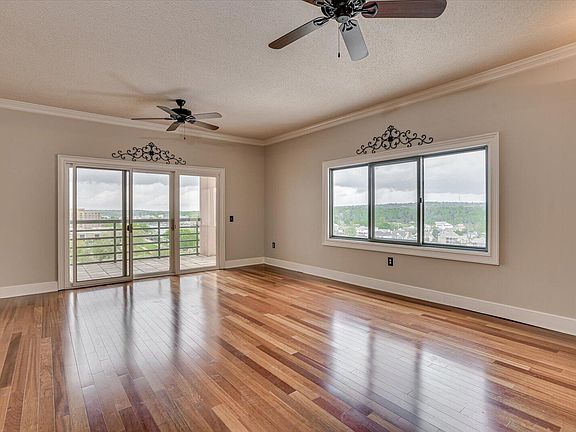 Fabulous river view condo has been meticulously maintained. Lovely balcony overlooking the river! Perfect place to watch the fireworks! Gorgeous hardwood floors, open floor plan great for entertaining! Two spacious bedrooms each with private baths. Owner's suite offers his and hers closets. Third available quest suite for extra overnight quests HOA monthly dues cover trash, water, ,common areas, basic cable, termite control, 24 hour security and exterior. Walk to wonderful restaurants, entertainment in the commons, theaters, quaint shops and the river walk! Hassle free living at its best!
