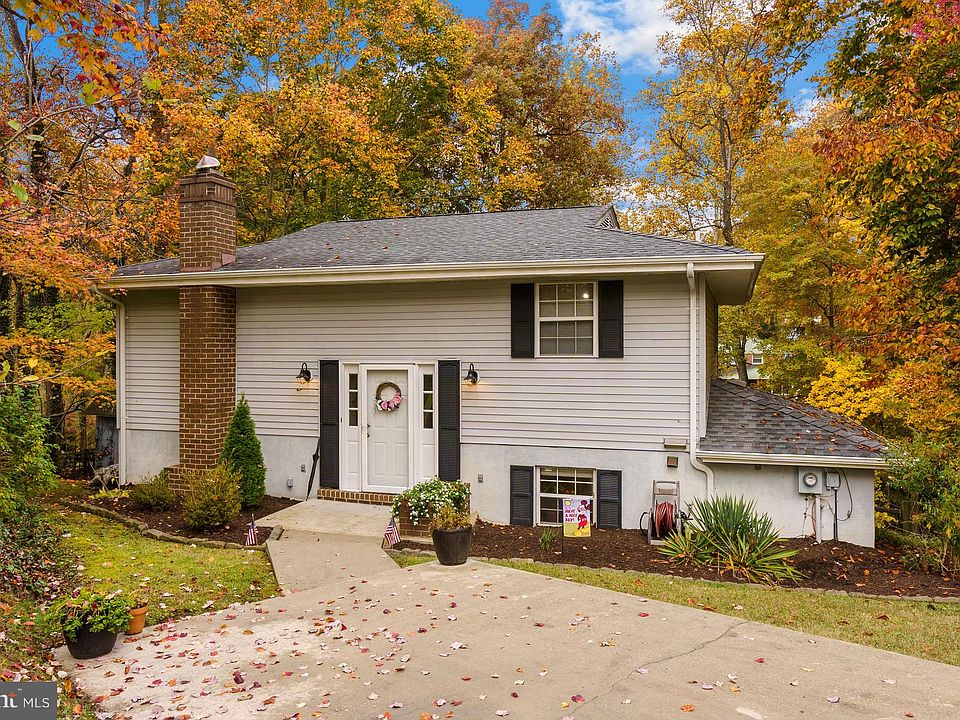 Beautiful surroundings this charming home is a picture perfect! Located on a cul-de-sac, Step into this split foyer to a cozy family room complete with a marvelous stone surround wood burning fireplace. The kitchen is a chef's dream with stylish stainless steel appliances, granite counters and contemporary cabinetry. Enjoy a meal in the spacious dining area boasting breezy ceiling fan, chair rail and atrium door to the rear deck and yard. The sleeping quarters provide a peaceful retreat complete with 4 lush bedrooms and 2 recently updated full bathrooms. The primary bedroom is delicately detailed with ceiling fan, en-suite bath and access to a private balcony. Surround by mature trees, your secluded enormous back yard provides a relaxing space with expansive deck. Location is a plus with water and dock access plus conveniently near the Indian head Rail Trail. **Fresh Paint Throughout, Newly Installed Roof, Huge Yard, Updated Fireplace**