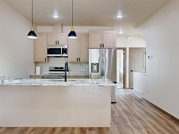 Timberline Townhomes offers an affordable & NEW construction townhouse opportunity in downtown Red Lodge. Located a half a block from Rock Creek and a few blocks to the heart of downtown these homes offer easy living whether for a full time residence, vacation home or short term rental. Great floorplans with 3 bedrooms/2 baths and an oversized single car garage. Quality finishes like quartz or granite countertops, solid alder doors and trim, self closing cabinets, Pella windows, stainless appliances and heated garage. Relax on the upper level balcony or on the covered lower level patio. Privacy fenced and storage for outdoor gear. Timberline Townhomes offers a lifestyle where nature meets modern comfort. With stunning views of the Beartooth Mountains & easy access to hiking, skiing, and local attractions, you’ll find everything you need to embrace the best of Montana’s outdoors. End unit