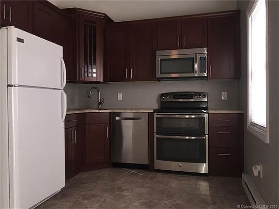 Fully remodeled townhouse with upgrades throughout, including new windows, doors, fixtures and air conditioner. Kitchen has brand new soft close cabinets, granite and carrera marble countertops. New high end, energy efficient appliances. Brand new vanities finish the look of both remodeled bathrooms. Dramatic 16' ceiling open to upstairs. Bedroom has large walk-in closet. Extra space in the 16.5'x17.5' section of finished basement with separate area for washer and dryer. Beautiful location in area of expensive homes minutes to shopping, South Windsor, Vernon and I-84. Complex allows pets, up to 45lbs, 2 dogs or cats. Seller related to agent.