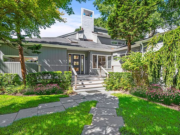 This sun-filled contemporary situated on a private 1 +/- acre was meticulously renovated in 2021. A thoughtfully designed floor plan provides 3,500 +/- square feet of open living space, 3 bedrooms, 3 baths and den. The dramatic open-concept layout features expansive skylights that fill the home with natural light. The first floor features a living room with fireplace, a stylish dining area, a sleek eat-in kitchen and comfortable family room, all seamlessly integrated. Walls of sliding glass doors connect the interior to an expansive multi-level wood deck surrounding a heated gunite pool, providing a relaxing indoor-outdoor lifestyle. The first floor also includes two separate bedroom wings; a tranquil primary suite and an additional guest suite with a full bath and adjacent den. Upstairs, a private loft-style bedroom suite features its own deck overlooking the pool, offering an ideal retreat for guests. Additional amenities are a full unfinished basement, a two-car garage, and mature landscaping. Enjoy close proximity to Quogue Village shops, dining and beach - making this a perfect year-round residence or weekend escape.