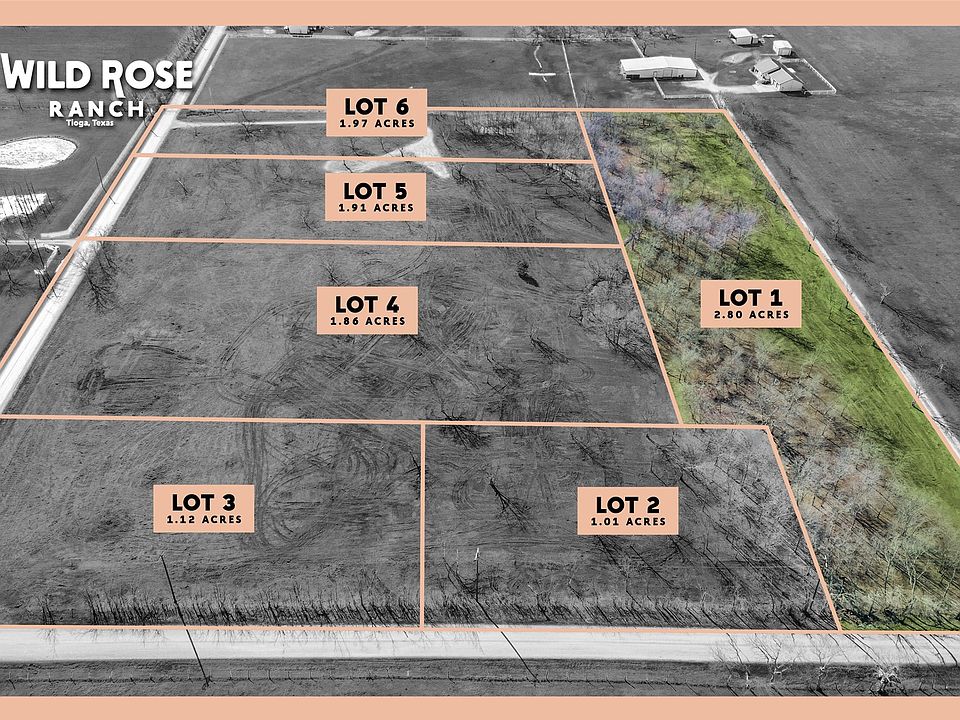 HUGE PRICE DROP! ALMOST THREE ACRES OF READY TO BUILD LAND FOR YOUR CUSTOM HOME OR UPSCALE BARNDOMINIUM FOR UNDER 300K IN GRAYSON COUNTY!! Start Building Your Custom Dream Home Now on this 2.80 ACRE Lot in Wild Rose Ranch in Tioga, Tx! Lot Comes Fully Equipped with Water, Electric and Roads. NO City Taxes, NO MUD, NO PID and NO HOA. Lot is in Close Proximity to Dallas North Tollway Providing Easy Access to Prosper, Celina and Frisco and all the Shopping and Stores Including the Upcoming HEB and Costco. Choose to Either Bring Your Own Custom Home Builder, or On-Site Builder Wesley Farr Homes Can Assist You in the Building Process! BARNDOMINIUMS WELCOME! This 2.80 ACRE Tract of Land is Suited for an Amazing Custom Home with a LARGE Build Site and 100 Feet of Road Frontage. Horses, Chickens, Cows, Longhorn, Bulls, Llama, Buffalo, Sheep and Goats are Allowed! Accessory and Detached Buildings Allowed for All Your Toys, Including Mother In Law Suite. The Expansive Lot Boasts Wooded Trees and a Small Winding Creek that Perfectly Borders the Edge of the Lot. Located in Highly Acclaimed TIOGA ISD! Located in County Jurisdiction, You Can Get Started on Building Your Dream Home Right Away Plus Save on Your Property Taxes! Current Tax Rate is ONLY 1.67 Percent!! Wild Rose Ranch is Tioga's Newest Exclusive Subdivision with ONLY SIX LOTS FOR SALE Ranging from 1 Acre to 2.80 Acres. Close to Lake Ray Roberts for All Your Boating and Lake Activity Needs! Contact Agent Stephen Reddy Directly with Any Questions & Available Lots List. Minimal Build and Deed Restrictions