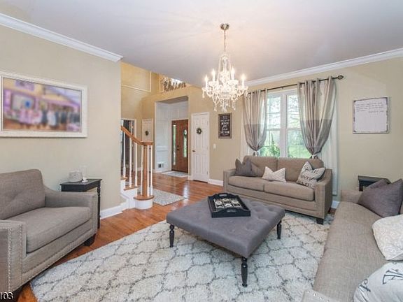 Gorgeous center hall colonial on a beautiful level lot is a MUST SEE! Open floor plan with large gourmet eat-in kitchen, sunken family room with fireplace, cathedral ceiling and oversized windows. The layout with formal living room, dining room and kitchen make it perfect for entertaining and everyday living. Enjoy your private oasis outside, sliders from the kitchen lead out onto the oversized deck and fenced in yard. Relax in the hot tub or by the fireplace under the pergola. The master bedroom has an impressive walk in closet and bathroom. Plenty of closets and storage space. Plus a fully finished basement for additional living space. Sqft is from NJ tax record
