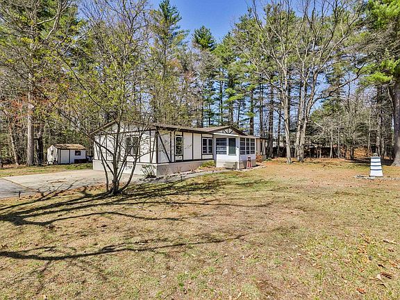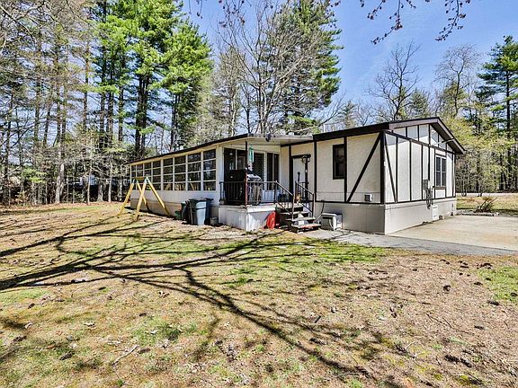 Welcome to Hollis Pines, a charming 55+ community. This spacious double-wide, built in 1982, boasts a generous 1,868 square feet of living space. Nestled on a serene, level lot, this home blends comfort with tranquility. Step into a bright and airy living room featuring an updated hearth with a pellet stove, perfect for cozy evenings. The open-concept kitchen offers ample cabinetry and counter space, accommodating a full-sized dining table. Adjacent to the kitchen, a versatile room awaits—ideal for a home office or formal dining. Savor your morning coffee on the inviting front porch, or retreat to the expansive enclosed back porch overlooking the peaceful backyard—ideal for relaxation or entertaining guests. The primary suite, complete with a full bath, ensures privacy, while two additional bedrooms share a well-appointed main bathroom. With its functional layout, inviting ambiance, and community-oriented setting, this home provides effortless living. Conveniently located near highways, shopping, and medical facilities, it offers a perfect blend of convenience and comfort. Don't miss out on this opportunity to own a home in a great location—schedule your showing today! Seller to find suitable housing.