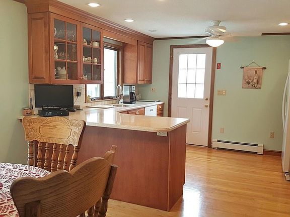 Terrific opportunity for HOME BIZ w/ private entrance or INLAW potential. Currently used as a hair dresser. Immaculately maintained 3 bedrm, 2 bath split w/ many unique details. Wood banister & hardwd flrs greet you in the foyer & carry thru spacious livingrm, diningrm & kitchen. Kitchen updated w/ custom maple cabs & corian counters w/ newer appliances, recessed lighting,ceiling fan & egress to deck. Diningrm has slider access to wrap around composite deck w/ vinyl railing.Wide hallway comes updated full bath w/ dble vanity, granite counters, & tub/shower. Lower level familyrm has beautiful center beam accent allowing for open space for the pool table.Corner woodstove adds cozy comfort to the extra large area.Gather up to custom built dry bar for drinks & goodies perfect for entertaining.Laundry & utilities tucked behind closed doors. Plans for an INLAW were drawn for lower level. Manicured private yard w/ well for watering.Over-sized 2 car garage with work benches & side egress.