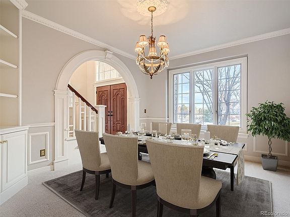 Welcome to 1 Arabian Place, a beautiful 5bd/5ba home on 1/2 acre lot in sought-after Polo Reserve-Polo Meadows neighborhood; a private community of 18 custom homes. Conveniently located 20 minutes from downtown Denver & DTC, 5 minutes to downtown Littleton, 2 Light Rail stations nearby, quick access to mountains & situated near Platte River Trail System. Off-street golf cart access to acclaimed Columbine Country Club w/ 2 golf courses, tennis & pickleball facilities, pool & wellness center. Upon entering through newly installed ProVia double doors, one is greeted by a spacious & inviting entry leading to a great room, kitchen, formal dining & living room (each w/ crown molding) & wood paneled home office. Main level features open floor plan w/ high ceilings, generously sized rooms, maple hardwood floors, 2 gas fireplaces (great room, 2-sided to office & living room) making it perfect for entertaining guests or spending quality time w/ loved ones. Chef’s kitchen features stainless steel appliances, new 5 burner cooktop stove, ample cabinet space & walk-in pantry. Upper level includes spacious primary suite w/ mountain views & gas fireplace & features a large walk-in closet & 5 piece primary bath. 3 additional large bedrooms include 1 ensuite bath & addl jack & jill bath. Lower level features family room w/ wet bar & wine cellar, perfect for movie nights or game nights w/ friends w/ addl bedroom & ¾ bathroom, make for great space for guests, addl home office or playroom for the kids. The flat and open yard is beautifully landscaped providing ample space for kids play, outdoor entertaining or barbecuing. 3 car side load garage, w/ space for your personal golf-cart. The exterior includes a new roof, paint & many Andersen windows. The interior includes NEWLY FINISHED MAPLE HARDWOOD FLOORS THROUGHOUT THE MAIN LEVEL & NEW CARPET & PAINT THROUGHOUT THE ENTIRE HOME. Highly sought after LPS school district & convenient to Colorado Academy, Denver Christian & Mullen.
