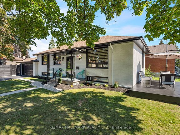 *Brick bungalow thoughtfully updated *Finished Basement with separate entrance *Double Garage *Spacious Corner lot *Great location * Gorgeous curb appeal. Welcome to this rare 3+2 bedroom, 2 bath, solid brick bungalow, nestled in the heart of Wexford, on a quiet, family-friendly street. Surrounded by meticulously designed landscaping, this detached home boasts an extra-wide private driveway and an attached 2-car garage. The main floor offers a bright and airy open-concept living and dining area, a modern kitchen, and a welcoming foyer with a mirrored closet. Three spacious bedrooms with double closets and a 4-piece bath offer a comfortable layout designed for modern living. The finished and spacious basement is ideal for an extended family, nanny quarters, or home office. It offers a separate side entrance, second kitchen, large rec room with a wood fireplace, two additional bedrooms with closets, a 3-piece bath, and a laundry with sink and storage. Enjoy outdoor living on the large front porch with a glass railing, spacious side deck, and the fully fenced and private side yard. Close to parks, schools, shopping, Costco, and public transit. Don't miss this fabulous home in a high-demand, family-friendly neighborhood!