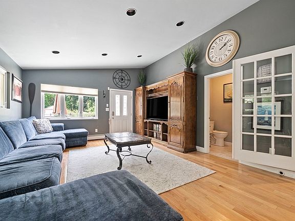 You'll find abundant space to spread out and room to grow in this beautifully updated ranch-style cape home with five bedrooms, including three on the first floor. Living room opens to a large family room, great for entertaining. Updated eat-in kitchen with white cabinets, stainless steel appliances, granite countertops and pass-through wood-burning fireplace to formal dining room with fireplace, wainscotting and beamed ceiling. The first-floor primary suite features two walk-in closets and updated bath with granite counters and ceramic flooring. Upstairs you'll find two additional large bedrooms and another full bath with ceramic flooring and granite counters. The full walk-out basement has been framed and is ready to finish. Newer water heater, 200-amp electrical service and spacious two-car garage at the end of a circle driveway. Gorgeous corner lot with private backyard and in-ground pool. Walking distance to Wood Hill/High Plain Schools. Quick access to 93. Don't miss it!