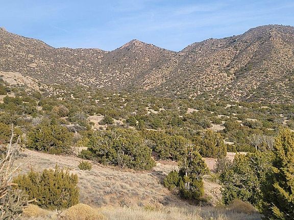 Large acreage that abuts the City of Albuquerque Open Space at Tres Pistolas and Cibola National Forest.Enjoy miles of hiking trails from your own private and secluded acreage.This property has 360 degree views of the Sandias, Manzanos, and Tijeras Canyon. Scenery straight from the movies! Property has some development potential and is zoned MH for Manufactured Homes. Close to town but a world away.