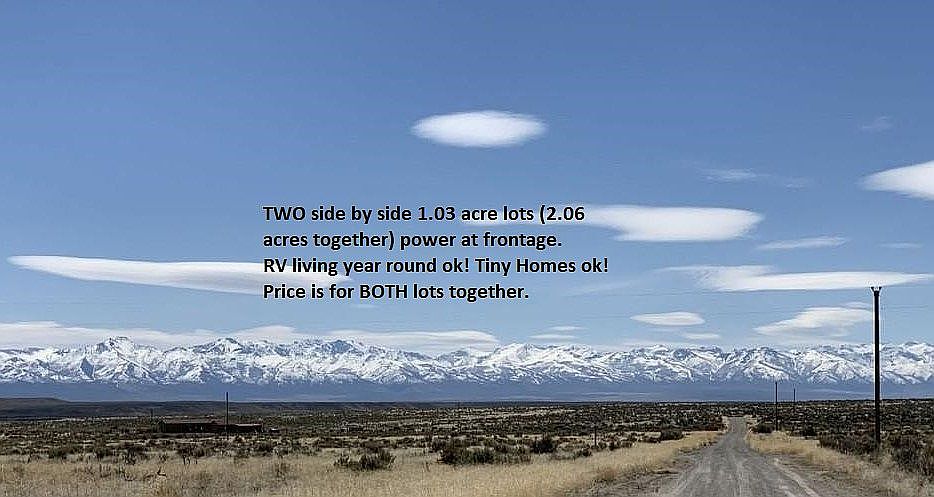Prices on the rise! TINY HOME AND RV LIVING PARADISE! Staked & surveyed! Don't sleep on this deal. TWO individually deeded side by side lots, one of which is a corner lot. 1.03 acres each, together 2.06 acres. Excellent potential for Airbnb rentals etc. BEAUTIFUL VIEWS of the Ruby Mountains right from the property. PICTURES ARE ALL OF PROPERTY and taken FROM THE PROPERTIES to show the surroundings as you'll see them. Located in Deeth NV (Elko County approx 20 mins from down town off I-80) surrounded by the beautiful Ruby Mountains. Picture 3 shows a drone view of property after it was bush hogged in 2022 and gravel horse shape driveway was installed. Utility company power poles at frontage! RV living is allowed year round if you install septic VERY RARE these days. $22,500for both lots! Free and clear with no back taxes nor liens. Serious inquires feel free to email questions and leave # to discuss. rlffinancial@yahoo.com Warranty deed- You can also go through title and escrow at your own expense if you wish or deal direct. For sale by owner.