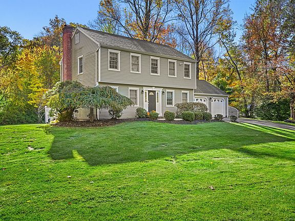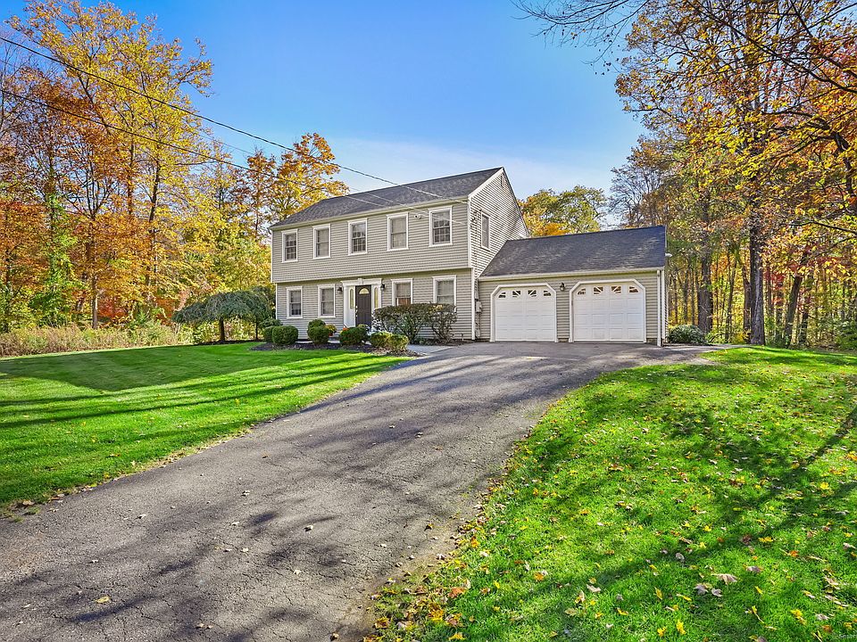 4-bedroom, 1.5-bath updated Contemporary Colonial on a level one-acre corner lot with fenced above-ground pool. This home features classic architectural details, new landscaping, a custom stone entrance, and hardwood floors throughout. The renovated eat-in kitchen includes a farmhouse-style sink from Italy, stainless steel appliances, quartz counters, brick backsplash, and a large center island with breakfast bar. The open floor plan provides natural light, a formal dining room, and a spacious living room with fireplace and sliders to the back deck and pool area. A powder room completes the main level. Upstairs offers a large primary bedroom with dual closets, three additional bedrooms, and a full bath. The unfinished lower level provides storage space. The backyard includes a fenced pool with new liner, freshly painted deck, stone walkway, and private lawn. Additional features include central AC, natural gas heat, generator hookup, paved driveway, two-car epoxy garage, and storage shed. Convenient location near shopping and restaurants. Improvements (since April 2024) New roof New furnace New Air conditioner unit New water heater New water filtration system Entire inside repainted Painted deck Recessed lighting installed Cameras and security system Invisible Fence