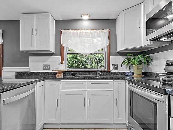 Welcome home to this beautiful 3 bedroom, 2.5 bathroom ranch in desirable Windham NH! As you enter, you're greeted with an inviting floor plan that features an oversized main living area with wood stove that opens to the secluded back yard. Enjoy your family meals or entertaining in the newly remodeled eat in kitchen that includes custom cabinets, stainless steel appliances, and granite counter tops. The Primary Bedroom offers lots of space to unwind and includes a Primary Full Bathroom. Need more space? Head downstairs where you can enjoy a large, finished bonus room, half bath, and lots of storage room. This home has just received fresh paint throughout, new vinyl siding, new windows, and will have a new asphalt shingle roof prior to closing. Situated on 1.45 acres, you're able to have all the privacy you need while also enjoying a great neighborhood setting. Don't miss your opportunity to see this great home! Showings begin at the Open House Saturday 7/30 from 2-4, and Sunday 7/31 from 11-1.