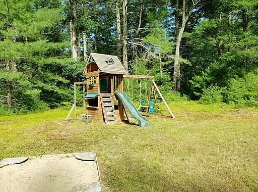 All the benefits of neighborhood living yet so secluded. This Cape is set within a 3 acre parcel on you own private road. It has a first floor master suite, a beautiful fireplace cathedral living room, A first floor laundry and a loft area outside the two upstairs bedrooms. It is conveniently located just off Rte 140 and is close to Restaurants, Gas, a shopping center and Long Pond. Sellers had the interior painted and the house professionally cleaned. Move in and enjoy.