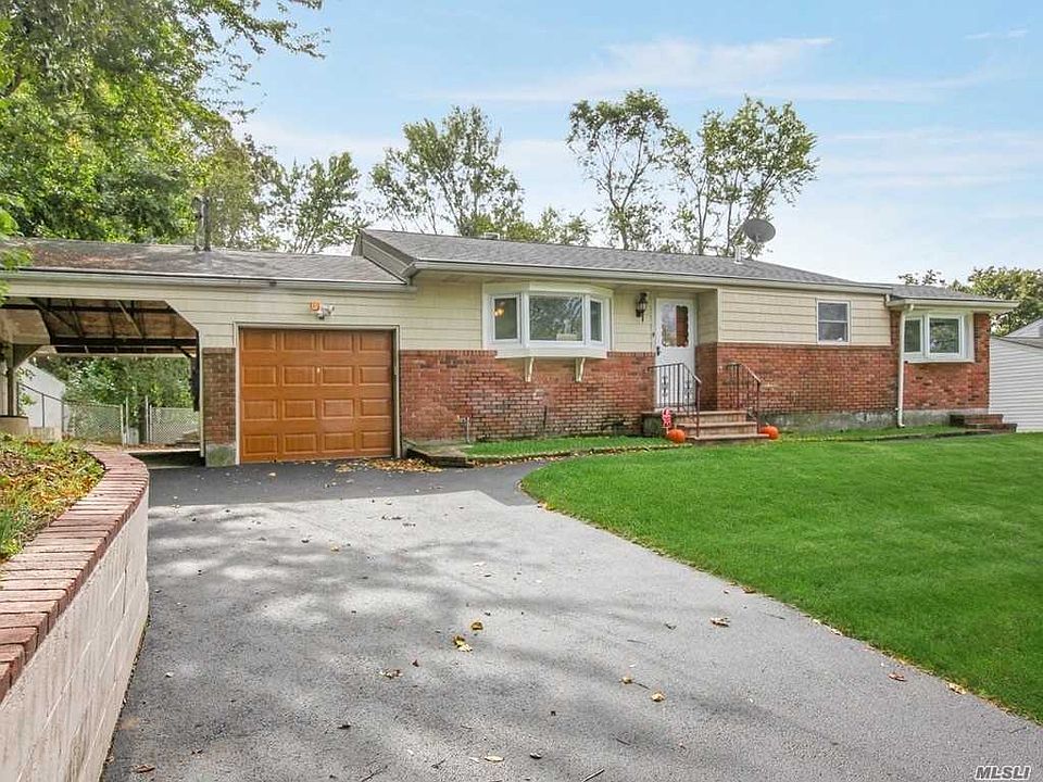 Beautiful 3 br, 2 bath ranch featuring a renovated first floor includes kitchen, bath, hardwood flooring, windows and SS appliances. 200 amps of service with solar panels, gas forced heating, central air, 8 zone in ground sprinklers, outside entrance for the fully finished basement, brand new cesspool,1.5 car garage, carport, park like backyard.
