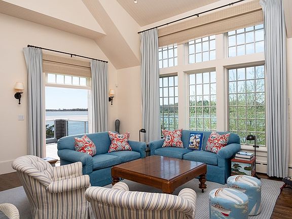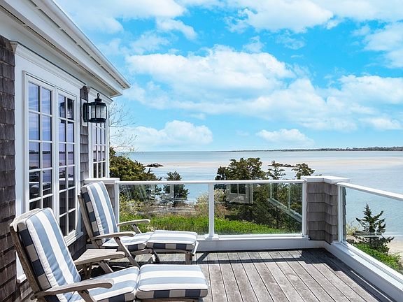 Absolute perfection! Breathtaking water views from most every room of this quintessential beach house, set on high, overlooking Buzzards Bay and beyond! A spectacular great room located on the upper level maximizes the views with walls of windows and French doors opening to a waterside deck. Spacious open kitchen features professional appliances, stone countertops, and is open to the cathedral ceilinged living room. Adjacent is a formal dining area and "sunroom." The primary suite is found on the mezzanine level with a walk-in closet, marble bathroom, and wall of glass overlooking the bay. On the main level there is a cozy office/nook as well as two comfy bedrooms and a guest bathroom. The yard is private with ample room for a terrace...while the beach/water access is merely a stone's throw away! This meticulous beach house is but minutes to Padanaram Village, shops, restaurants, yacht club, and there is not a thing to do but move right in!