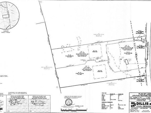 Great opportunity for builders to grab two approved building lots in Littleton. Ideal commuter location and close to all town conveniences, shopping, dining, movies, local farmstands and highway access. Lot 1 contains 4.11+/- acres & Lot 3 contains 3.47+/- acres. Homes will have a shared driveway with access from Lot 1. Both lots frontage is located in Westford (combined 0.3A). A wetland crossing is required per approved plans. Septic designs for both lots are 4 bedroom homes.