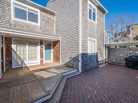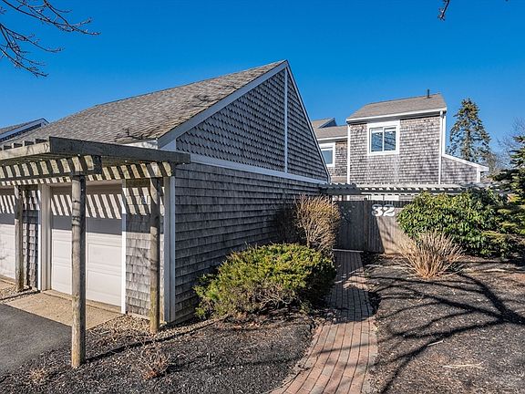 Lovely end unit at The Belmont! The largest floor plan and private outdoor space among the townhouses! The living room is spacious, light, and airy with cathedral ceilings and a wall of sliders to a large deck! Beautiful engineered hardwd floors thru-out the 1st flr. Primary BR suite with a large walk-in shower on the 1st floor! Upstairs are 2 guest rooms, a loft, and a full bath. Plus, a finished lower level with a full bath! A 2011 kitchen reno includes granite counters adjacent to a breakfast nook with a slider to the front deck and patio--handy for grilling and dining alfresco. Equipped with a gas FP and cooktop, generator, gas heat, central AC, 1st flr laundry, garage. Enjoy access to a beautiful private beach on Nantucket Sound, tennis and pickle ball courts, bocce ball, pool, and a private waterfront restaurant. Ideal for all generations seeking the ultimate beach retreat! Virtually staged pictures: 3rd BR, 2 lower level rooms. Enjoy the video! Buyers/agents to confirm details.